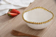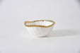 Snack Bowl from our Golden Salerno Collection. Perfectly sized for mixed nuts, berries, candies, dips, or even individual portions, this bowl is a must-have for every occasion - from casual snacking to taco night toppings. Gleaming white porcelain with lustrous gold beads. Food safe, tarnish free, dishwasher safe, oven safe to 500°F/260°C. Easy Care.