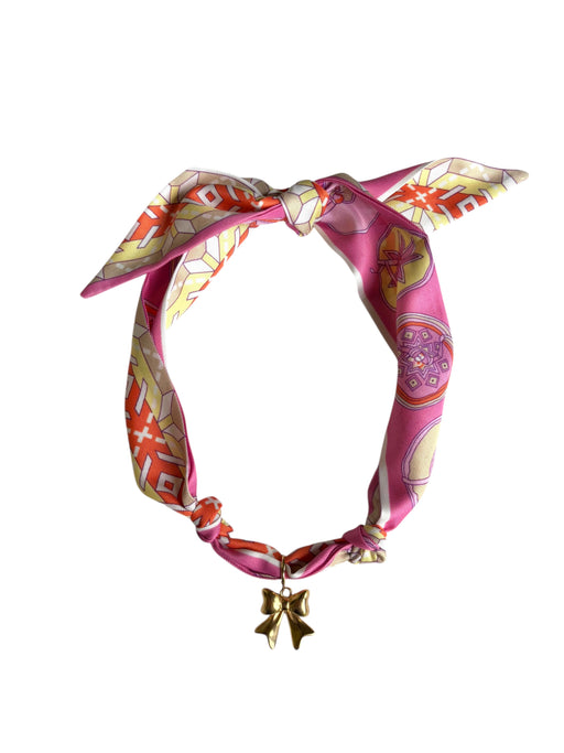 Our Wynne scarf necklace is designed with a high end satin scarf and charm. A fun addition to any outfit!
