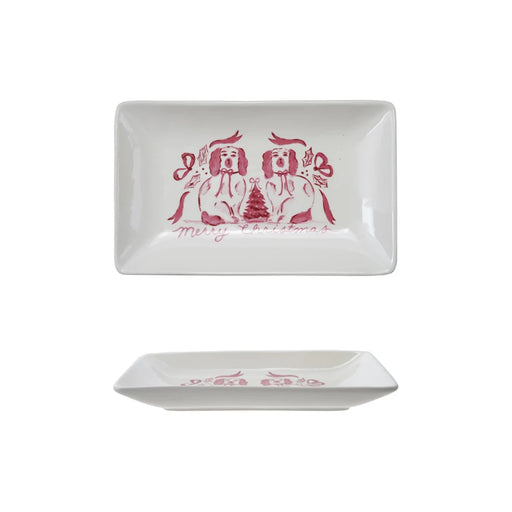 Celebrate the season with this charming Staffordshire Dogs Stoneware Dish, measuring 8-1/4" by 5". Featuring a festive "Merry Christmas" design in ...