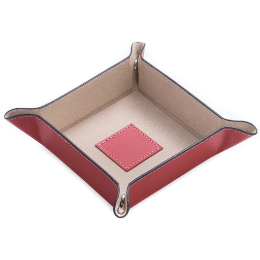 Color: red. Genuine leather. Pigskin leather lined. Unsnaps flat. Leather center patch.