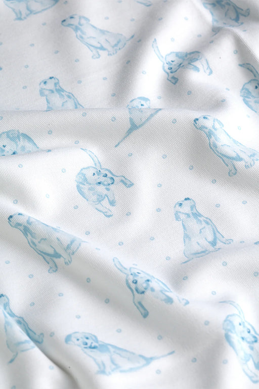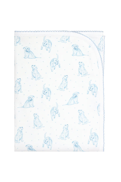 Our Puppy Love blanket in blue is crafted from the softest Peruvian Pima cotton, perfect for wrapping your baby in comfort. Lightweight and breatha...