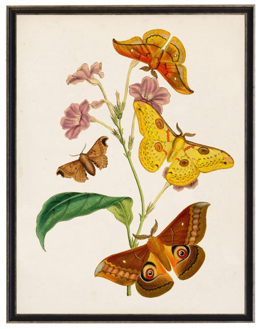 $ 85.00Art Print, Vintage Colorful Moths and Flower