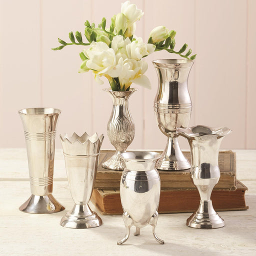 While traveling through Europe, we were enamored by the many antique designs. These eye-catching silver-plated brass va...
