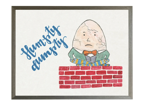 This quality, 24 x 18 framed print features a whimsical Humpty Dumpty- so cute for a child's room or playroom. local pickup only