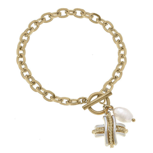 This stunning Serena Cross Toggle Bracelet in Worn Gold or Two-Tone is the perfect accessory to elevate any outfit. With a vintage inspired worn go...