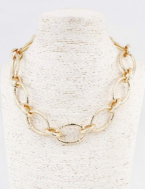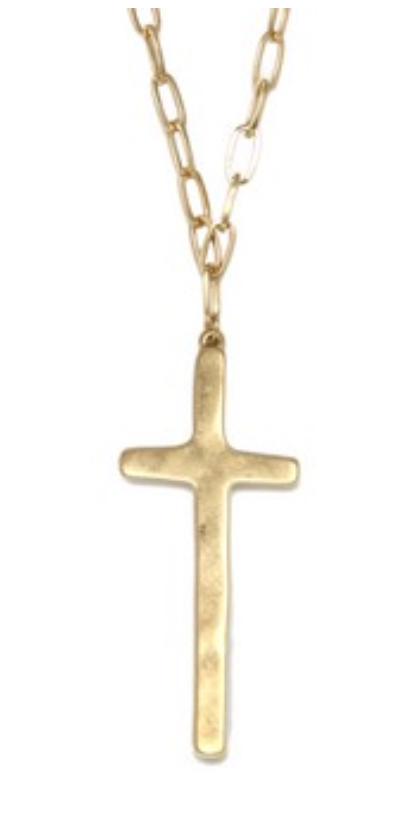 Discover the beauty and power of the Bernie Gold Necklace, featuring a striking 30-32in gold link chain with a hammered cross pendant. Elevate your...