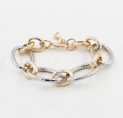 This bracelet features a clasp designed with intertwined gold and silver links, combining elegance and versatility in one refined accessory.