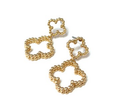 These 1 1/4-inch earrings showcase a double gold bead design shaped like a clover, reflecting expert artistry and elegance.