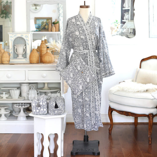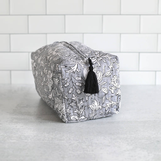 Keep your essentials beautifully organized with our Pacho Slate Floral cosmetic bags. Hand block printed on soft cotton with a graphic reversed flo...