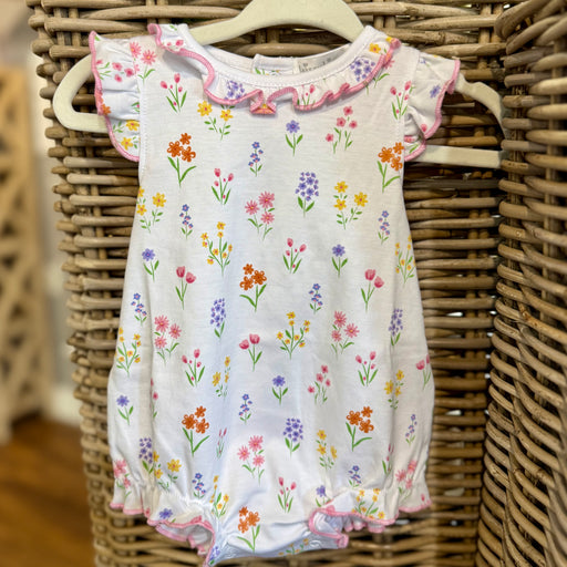 Our fun pink country gardens print patterns this bubble for your baby. Made from 100% Pima cotton for a soft and comfortable fit. 100% Pima Cotton...