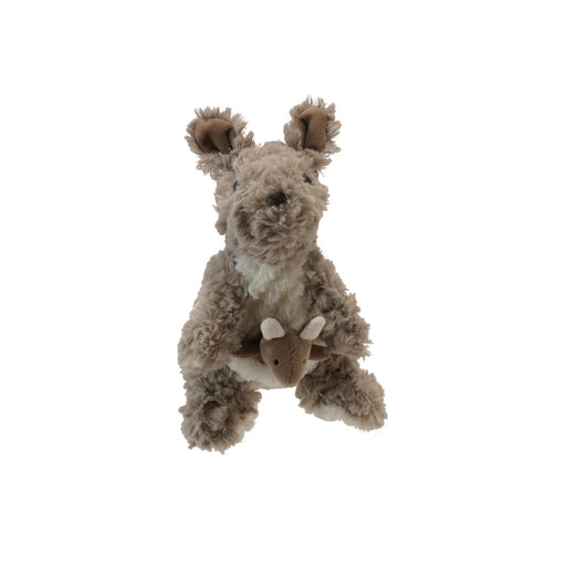 Adorable plush kangaroo with a removable joey tucked inside the pouch—perfect for cuddling and imaginative play. Soft grey and white fabric, compac...