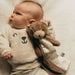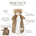 This favorite security blanket is a mushroom brown cuddly bear with handcrafted, baby-safe embroidered face and a snuggly soft white velour split blanket, lined and edged in silky satin.