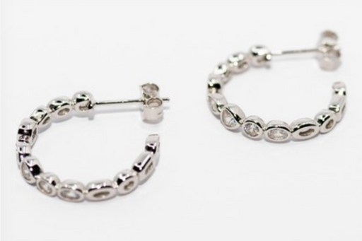These 3/4 inch hoop earrings are made from sterling silver and showcase geometric clear stones, offering a sleek and modern touch to your accessory...