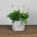 This stoneware cachepot flaunts two hand sculpted daisies and glazed in gloss white. Sized to drop in a standard 4” drop in pot. Indoor gardening made easy!