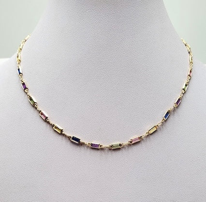 This adjustable gold necklace spans 16-18 inches and showcases radiant light multi-stone details that add understated elegance to any outfit. Wear ...
