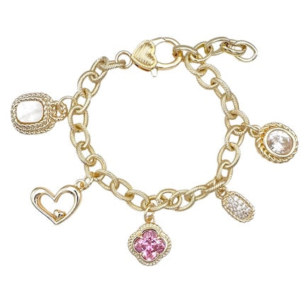 Delicate gold links with a subtle textured finish create an elegant foundation for this charm bracelet, offering endless personalization possibilit...