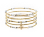 Gray multi crystal stretch bracelet adorned with a cross charm, offering a sophisticated and adaptable style.
