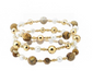 Sophisticated multi-strand bracelet combining gold beads, radiant pearls, and natural jasper stones for a timeless accessory.