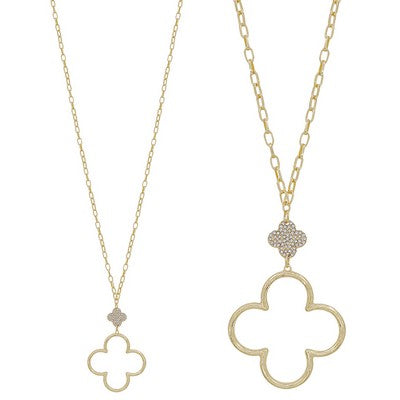 Elevate your everyday style with this stunning gold chain necklace, featuring a delicate pave-adorned clover pendant. The perfect length at 30-32 i...