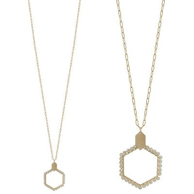 This 30-32 inch gold link necklace showcases a striking natural crystal octagon pendant. The warm gold finish pairs beautifully with the raw elegan...