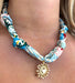 We are a little obsessed with these coastal colors! Our Nantucket scarf necklace is made from a high quality satin scarf with a beautiful gold maltese cross.