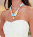 The Tahiti scarf necklace is just what your outfit needs! Gorgeous scarf with gold puffy heart charm.