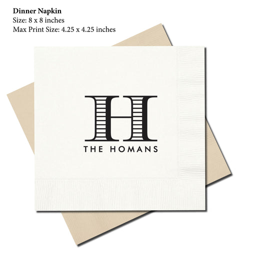 $ 0.00Dinner Napkin, Striped Initial